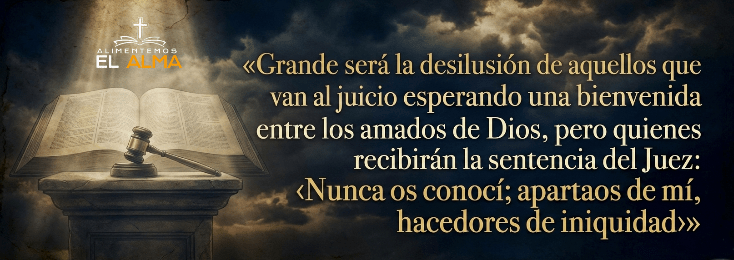 Grande será la desilusión de aquellos que van al juicio esperando una bienvenida entre los amados de Dios, pero quienes recibirán la sentencia del Juez: «Nunca os conocí; apartaos de mí, hacedores de iniquidad».